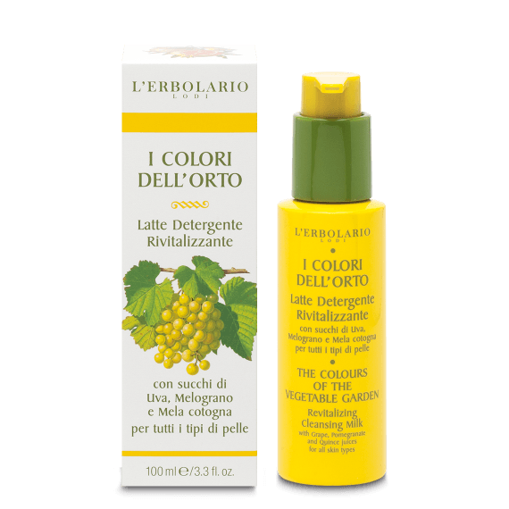 Detergere la pelle del viso è un’accortezza quotidiana che non dovrebbe mai mancare nella beauty routine. A potenziare l’effetto rivitalizzante di un gesto così importante pensa questo Latte Detergente, ideale per rimuovere impurità e tracce di make-up e assicurare una pulizia accurata. I pregiati succhi di Uva, Melograno e Mela cotogna, frutti dell’orto dalle virtù antiossidanti, durante la detersione contribuiranno a idratare l’epidermide e a darle un aspetto più compatto e tonico.
